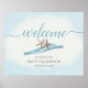 Starfish e placa de boas-vindas com noiva e noiva e a data do casamento. Fita azul e fundo de aquarela. Poster precisaria ser montado em um conselho para exibição.