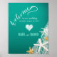 Esta na moda, praia "Starfish Netting", placa de boas-vindas ao casamento, poster apresenta lindos peixes-estrela capturados na rede de pescadores contra um fundo aqua. Vem em 6 cores: fuschia, azure azul, jade cinzenta, aqua, coral e areia. Clique no botão PERSONALIZAR TI para personalizar com seu próprio texto. Muitos produtos correspondentes disponíveis. CONSULTE TODA A RECOLHA EM: glamprettyweddings.com. Para perguntas/solicitações personalizadas, envie um e-mail: cheryl@glamprettyweddings.com/contact. "Starfish Netting" design original por Cheryl Daniels © 2014.