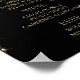 Menu Casamento. Bar Dourado e Fécula Negra. Produtos correspondentes disponíveis. ⭐ Este produto é 100% personalizável. *****Clique no BOTÃO PERSONALIZAR para adicionar, excluir, mover, redimensionar, mudar ao redor, girar, etc...qualquer dos gráficos ou texto ou use as caixas de preenchimento. 99% dos meus designs na minha loja são feitos em camadas. Isso facilita o "redimensionamento" e a movimentação de gráficos e textos para que cada produto seja ajustado perfeitamente. ⭐ (Não se esqueça de redimensionar ou mover gráficos, se necessário, antes de fazer pedidos) Você também pode "TRANSFERIR DESIGN" em outros produtos Zazzle e ajustar o design para o ajustado na maioria dos itens do Zazzle. (o botão fica no lado direito da página) Alguns gráficos de texto estão prontos para preencher a(s) caixa(s) ou você pode clicar no botão PERSONALIZAR para adicionar, mover, excluir, redimensionar ou alterar qualquer fonte ou gráfico. O design é feito com vetor de alta resolução e/ou gráficos digitais para um impressão profissional. ⭐ NOTA: (ISTO É UM IMPRESSÃO. Todos os designs do produto zazzle são "impressões", a menos que indicado em "Sobre este produto"). O design será impresso EXATAMENTE como se o visse no ecrã e no produto...portanto, certifique-se de que, ao fazer suas alterações no redimensionamento de qualquer dos gráficos ou textos que ele ajustado nas áreas corretamente, e que sua ortografia e texto seja como você gosta que seja em tamanho, cor e fonte. Se você tiver alguma dúvida sobre o "DESIGN SOMENTE" ou precisar de ajuda com o design, entre em contato comigo diretamente no endereço *siggyscott@comcast.net* ou visite o link da minha loja: https://www.zazzle.com/store/magical_weddings (Copiar e Colar) Eu terei todo o prazer em ajudar. ⭐ TODAS AS OUTRAS QUESTÕES ( ex: expedição, reembolsos, impressão não clara, o próprio produto, etc..). CONTACTE ZAZZLE ou o fabricante do produto ⭐ DIRETAMENTE ⭐. Obrigado pelo apoio e parada na minha loja - Magical_Wednings. © Donna Siegrist ⭐ ⭐ ⭐ ZAZZLE promete 100% de satisfação. Se você não o ama, Zazzle o devolverá! ⭐ ⭐ 1-888-8ZAZZLE (1-888-892-9953) Horário telefônico: Seg - Sex: 9H - 5PM (12PM - 8PM ET)