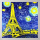 Esta bela design mostra a cidade de Paris France e a Torre Eiffel num estilo de pintura da Noite Estrelada de Van Gogh.