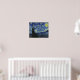 Este belo design de arte mostra o famoso quadro poste-impressionista holandês Vincent van Gogh, "A Noite Estrelada". Pintado durante sua estadia no asilo Remy Santo na década de 1880, van Gogh retratou as colinas rolantes e árvores ciprestes que viu de sua janela. Ele também acrescentou a vila, que ele não conseguia ver de sua janela, e o céu noturno girando. Aproveite esta pintura popular como está ou personalize-a.