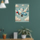 Num céu balbucioso cheio de nuvens fofinhas, um avião animado e alegre voa com um sorriso amigável. O avião, pintado em tons suaves de azul e branco, apresenta detalhes lúdicos como nariz vermelho, boné azul e decorações em forma de estrela em suas asas. Esta maravilhosa trabalho de arte de berçário captura a imaginação, evocando um senso de aventura e alegria, perfeito para inspirar mentes jovens. As pinceladas suaves e texturizadas e as cores pastéis criam uma atmosfera calmante e convidativa, fazer-a como uma adição ideal ao quarto de qualquer criança.