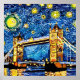 Esta bela design mostra a cidade de Londres Inglaterra num estilo da pintura Starry Night de Van Gough.