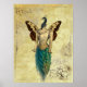 Design de arte de fantasia artística apresenta um pavão fantástico com asas de borboletas na jaqueta vitoriana Steampunk sobre o fundo angustiado de ouro da safra