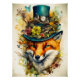 Ein Fuchs im Watercolorstil der einen hohen Zylinder im floralen Steampunklook trägt.