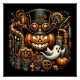 Steampunk Halloween com um jack-o-lanterno e um fantasma.
