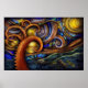 Esta é a minha versão da Noite Estrelada de Van Gogh. É uma versão steampunk. Usando engrenagens e relógios. Sua versão original, como vocês sabem, apresenta estrelas sujas, uma lua, uma cidade, e uma montanha longa e assustadora como essa. Escolhi um motivo de árvore porque as curvas fluem melhor com o céu. É uma versão mais simples do original, com um toque moderno. Faz um presente de excelente para qualquer um que seja fã de Van Gogh ou steampunk. Também é bastante hipnótico. Procurando POSTERS deste ou de algum desses designs? Você gostaria de aprender como eu crio isso?