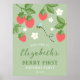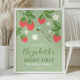 Welcome your guests in the sweetest way with this Berry First Birthday welcome sign! Featuring red strawberries, dainty white daisies, and a cheerful little bee on a green background, this strawberry birthday party sign sets the perfect tone for your celebration.
