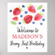 Bem-vindos aos convidados do seu partido com um sinal personalizado adorável. Enquadre o sinal e exiba-o numa mesa perto da entrada ou monte a espuma poster e mostre-a fora em um calcanhar. A design apresenta minha mão pintada de morangos e mirtilos.