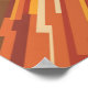 Um design geométrico abstrato com faixas retangulares diagonais de comprimentos e espessuras variáveis. O padrão é composto por tons de cor quentes, incluindo gradientes de amarelo, laranja, vermelho e marrom. O arranjo de faixas largas e finas cria uma sensação de movimento, velocidade e energia fluente. Os tons mais leves quebram a intensidade das matizes mais escuras, adicionando equilíbrio e profundidade. O design geral transmite um estilo dinâmico, enérgico e abstrato moderno.