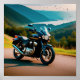Esta poster apresenta uma motocicleta contra um fundo natural espantoso.