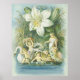 A suavidade apresenta uma lagoa, uma flor branca e algumas encantadoras fadas. É uma restauração de um cartão de saudação vintage. Vendido exclusivamente por Anjos Amelianos.