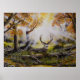 Impressão da Manhã de Rise Original Pintura de Petróleo por David E Paul. Deer sentado no prado com raios solares passando