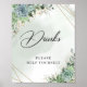 Sinal de bebidas boho com suculentas e eucalipto em moldura dourada para chá de bebê ou festa de noivado,