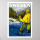 A poster que promove a pesca e as perseguições ao ar livre na Suecia.