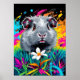 Esse retrato enérgico e lúdico captura o curioso olhar de uma cobaia enquadrada por flores neonatais e caleidoscópio de traçados de tinta. Com sua paleta de cores intensa e estilo de arte pop, esta peça combina beleza e criatividade de uma forma que clareia qualquer espaço. Ideal para amantes de animais de estimação, colecionadores de arte e fãs de cobaias à procura de uma mistura de diversão e personalidade.