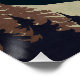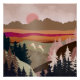 Uma paisagem abstrato com cores e texturas únicas mostrando uma paisagem natural com sol ascensão e dois gansos em tons de laranja, bege, marrom e rosa.