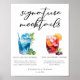 Este poster de caramujos com assinatura chic apresenta uma simples tipografia negra acima de 2 bebidas bonitinhas e seus ingredientes para seu bar de casamento de verão. Uma bebida azul havaiana sunrise e Sangria não alcoólica adicionam um talento legal ao seu menu de bar. Preencha com os nomes dos casais e a data para sua recepção.