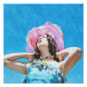 Uma imagem cativante mostrando uma mulher que se abateu sobre a luz do sol sob um brilhante céu azul. Seu chapéu cor-de-rosa e translúcido adiciona um toque de suavidade, complementando sua pose relaxada e expressão serena. Ela é enfeitada com um colar delicado, e seu vestido reflete uma paleta leve e arejada, enfatizando o calor e a liberdade da estação. Esta cena captura a essência de um dia ensolarado, evocando sentimentos de alegria, relaxamento e elegância - uma perfeita personificação de um humor brilhante de verão.