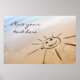 Sol desenhando na praia de areia. Perfeito para receber cartões. Conceito de diversão, positivo e felicidade.