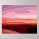Um design de arte abstrato do pôr do sol em cores rosa, lilás, preta, vermelha e pêssego.