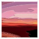 Um design de arte abstrato do pôr do sol em cores rosa, lilás, preta, vermelha e pêssego.