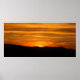 Um brilhante pôr do sol ouro pinta o céu nublado laranja e silhueta as montanhas fora de Ely, Nevada.