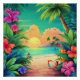 Póster Sunset de praia tropical com flores de Hibiscus