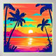 Uma ilustração vibrante e colorida de um pôr do sol tropical sobre um oceano calmo com palmeiras silenciadas contra o céu. Perfeito para criar uma atmosfera relaxante e serena (Essa Design Feita Com IA). Faça a ordem hoje e encare a alegria de Comprar!