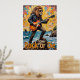 Este trabalho de arte dinâmico retrata um leão, olhando facilmente legal em óculos de sol e uma jaqueta de couro, "raspando" magistralmente um violão elétrico enquanto balanceado em uma rocha proeminente. A cena se desenrola através de um oceano turbulento com ondas texturizadas e um céu soterrado e feroz. O espesso e expressivo impacto que cria uma textura tangível, fazer da declaração "Rock or Die", ressoa com a energia bruta do desempenho.