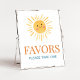 Torne o seu evento especial com este Chá de fraldas sunshine com o nosso bonitinho e adorável sinal de favoritos imprimível com um tema adorável do Chá de fraldas Sonshine. Baixe, personalize e crie memórias duradouras com este toque perfeito para sua celebração alegre! BS1036