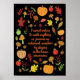 Poster sazonal com designs de queda. Fundo preto. Nathaniel Hawthorne cita.