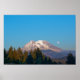 Uma fotografia da paisagem de um evento da Lua acontecendo conhecido como Super Lua. A ascensão da lua é perto do Monte Rainier em Washington.