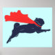 Poster Super Pug. Um design de vetor minimalista com um super-pinto voando com uma capa vermelha fofa. Um presente de excelente para fãs de cachorros, cães, caninos super-heróis e arte vetorial.