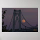 A ascensão da Lua Super Rosa em volta da Ponte Médio-Hudson no Vale de Hudson NY