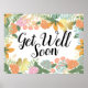 Belo primavera floral em folhagem florescente, com rosas cor-de-rosa e pêssego, plantas caprichosas diferentes e dois trevos de boa sorte. Adorável "Fique Bem Logo" encorajando poster de flores coloridas, para decorar uma parede paciente. Posters de encorajamento hospitalar