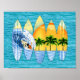 Arte de surfe no estilo mural em pranchas de surfe lado a lado em vez de uma parede.