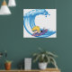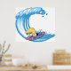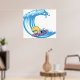 Um surfador cavalgando seu conselho em uma grande onda. Esta design parece realmente eficaz nestes Poster