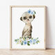 Poster Suricata, Safari, Selva, Flores Azuis, Berçário de