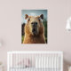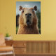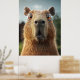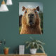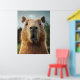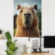 Um close cômico, bastante detalhado, de uma capivara com olhos amplos e expressivos, criando uma expressão hilária e atordoada.