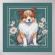 Digitale Kunst: Kleiner süßer Collie umringt von Pflanzen und Blumen, im Aquarell-Stil. Ideal für Hundeliebhaber. Auch als Download verfügbar!