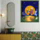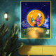 Uma aventura balbuciana desdobra-se quando uma menina alada a borboleta olha para a lua luminosa, cercada por maravilhas cósmicas.