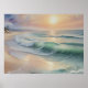 Uma praia tranquila banhada no brilho suave do sol, onde ondas suaves rolam sobre areias ouros em perfeita harmonia. Esse trabalho de arte ao estilo aquarela captura a dança serena da luz sobre a água, com delicados céus pastéis e texturas fluidas de seafoam — uma peça ideal para trazer calma, calor e elegância costeira para qualquer espaço.