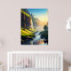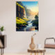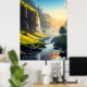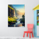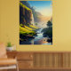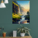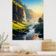 Uma vista espantosa de um vale sereno onde as águas cristalinas fluem suavemente através de prados verdes, com penhascos torrenciais e cascata banhadas à luz do sol do ouro. Esta paisagem impressionante captura a harmonia da beleza e da tranquilidade da natureza, fazer-a perfeita para arte de muro ou decoração.