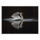 Um cisne branco natação num lago e cria lindas reflexões na água.