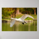 Poster com uma imagem fotográfica de um belo cisne em voo.