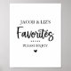 Comemore o amor em estilo com este moderno símbolo de favor do partido minimalista Favoritos — perfeito para casamentos, festas de noivado ou chás de panela. Projetado com linhas limpas e um layout de eterno, ele complementa lindamente qualquer tema elegante ou neutro de evento. Mostra para guiar os convidados aos favoritos para festas ou sobremesas escolhidos de forma cuidadosa.