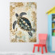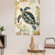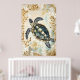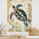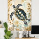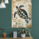 Poster swimming sea turtle surrounded by floral patterns.