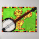 Decorem as vossas paredes em estilo com este único poster de arte popular musical. Nesta trabalho de arte engraçada e caprichosa, este gato de mesa listrado laranja se posiciona orgulhosamente com seu banjo contra um fundo primavera verde. A cena inteira está cercada por uma borda multicolorida correspondente. Este mini poster faria um presente de excelente para músicos, professores de música ou amantes de música que também amam gatos.