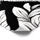 Poster num retrato preto e branco de um gato com olhos largos, num jardim rodeado de flores e folhagem.